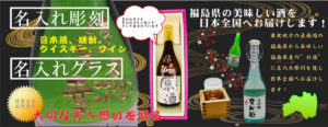 「ガラス彫刻エッチング工房ちゃわわ」では日本全国・福島県産の日本酒、焼酎、ウイスキー、世界中のワインに名入れ彫刻を施し、オリジナルギフトとして日本全国へお届けしております♪