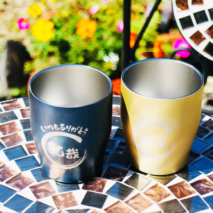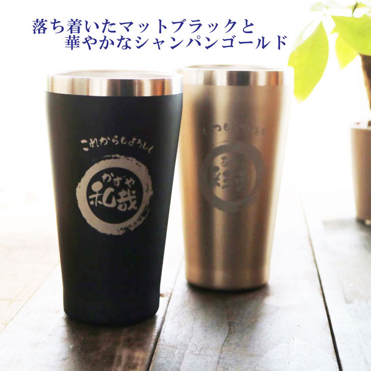 真空ステンレスタンブラーに、お名前・贈るメッセージを刻印します~誕生日プレゼントや還暦祝いなど大切な記念日に喜ばれますよ