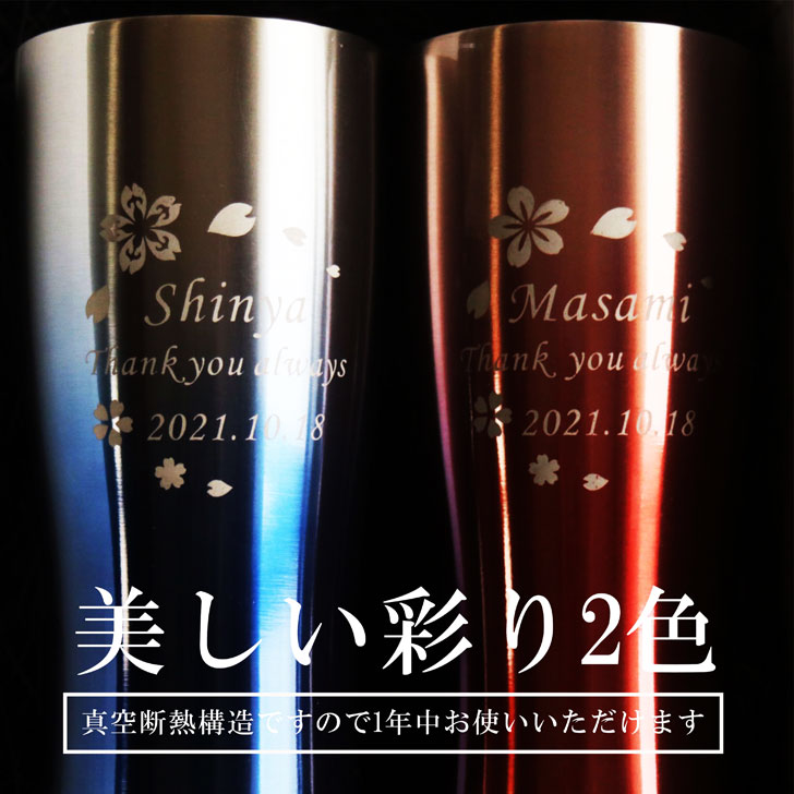 名入れ彫刻グラデーションタンブラーペアセット~美しい桜模様に包まれるように「お名前・贈る言葉・記念日」を刻印します♪