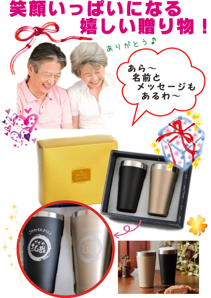 結婚祝いに喜ばれるプレミアムタンブラーペアセット♪お名前・贈るメッセージを刻印します(^^♪