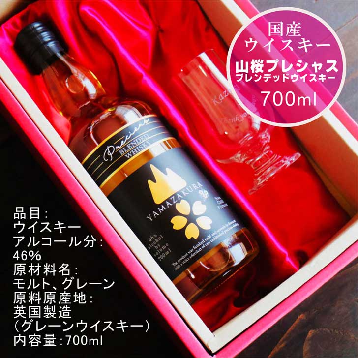 福島県の誇る創業250年以上になる老舗酒造メーカー「笹の川酒造」の伝統から造り出された国産ウイスキー「山桜プレシャス ブレンデッドウイスキー&名入れテイスティンググラスSET」